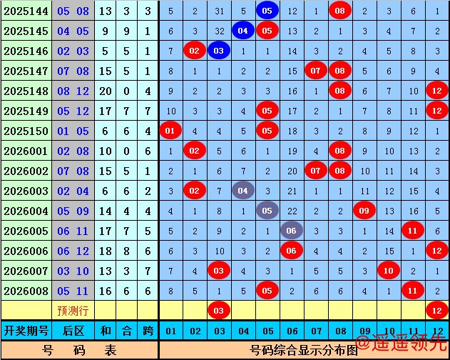 后区分析(一区01-04,二区05-08,三区09-12):上期后区开出奖号05和11,最近10期后区三区落号比为5:13:6,本期后区关注号码02、03、04、05、12,后区两码参考03、12。